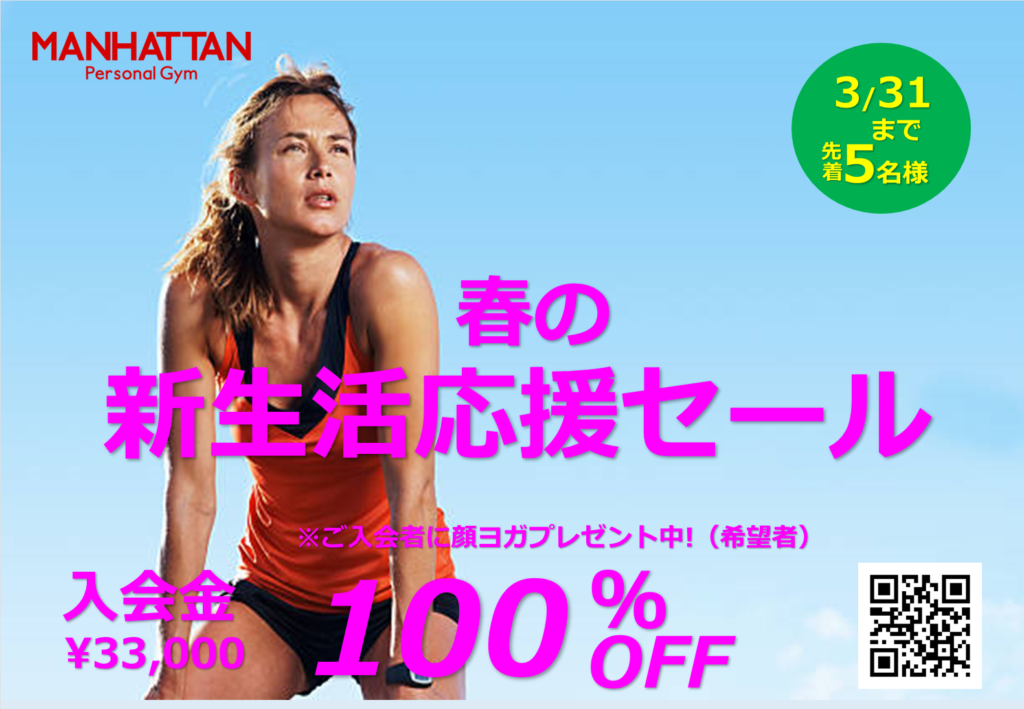 入会金33,000円が0円 体験料4,400円がご入会で0円 定員5名 3/31まで -